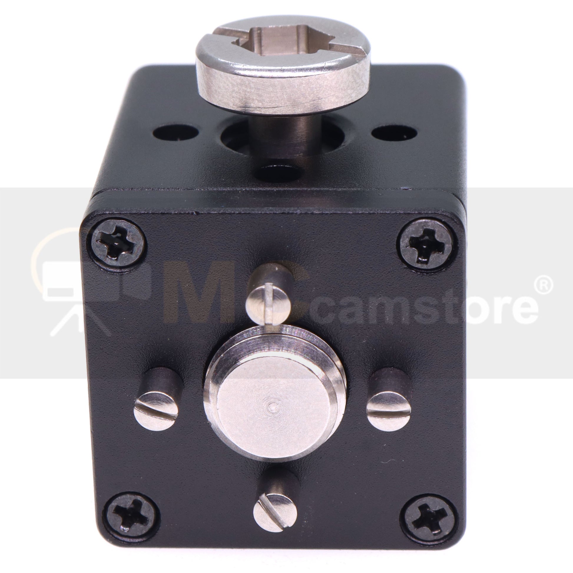 - This MCcamstore Block square 3/8" screw threads mounting plate bracket for camera rig kit, with 2x 3/8"-16 Screw, 4x location pins, size is 25*25*25mm, Color available: Black, Blue, Red