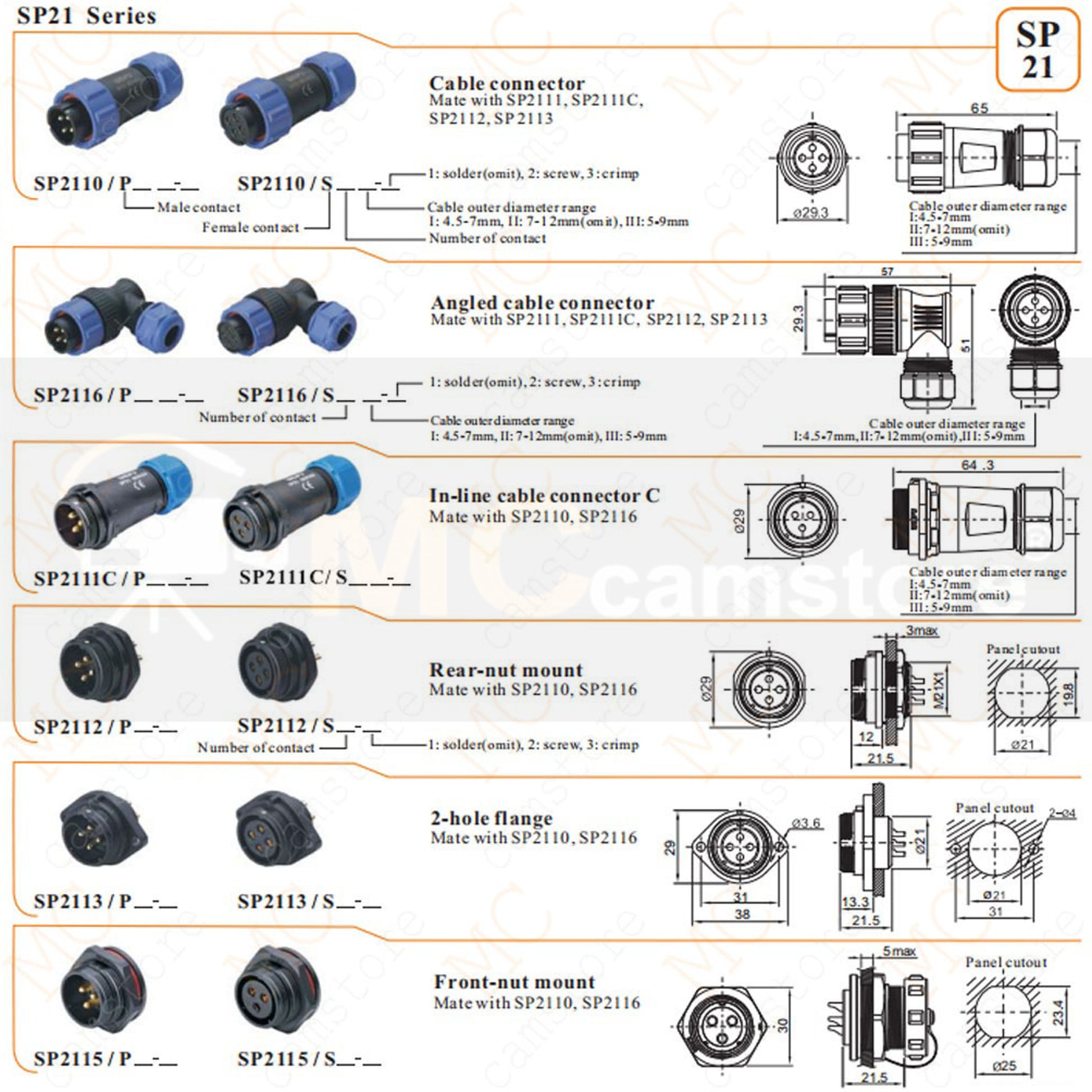 - Rated Voltage: 500V AC / Rated Current30A. Cable Outer Diameter Range: 4-12mm. Wire Size: ≤4mm² or 11 AWG 14 AWG, Contact Diameter: Φ3mm. Resistance: 1mΩ