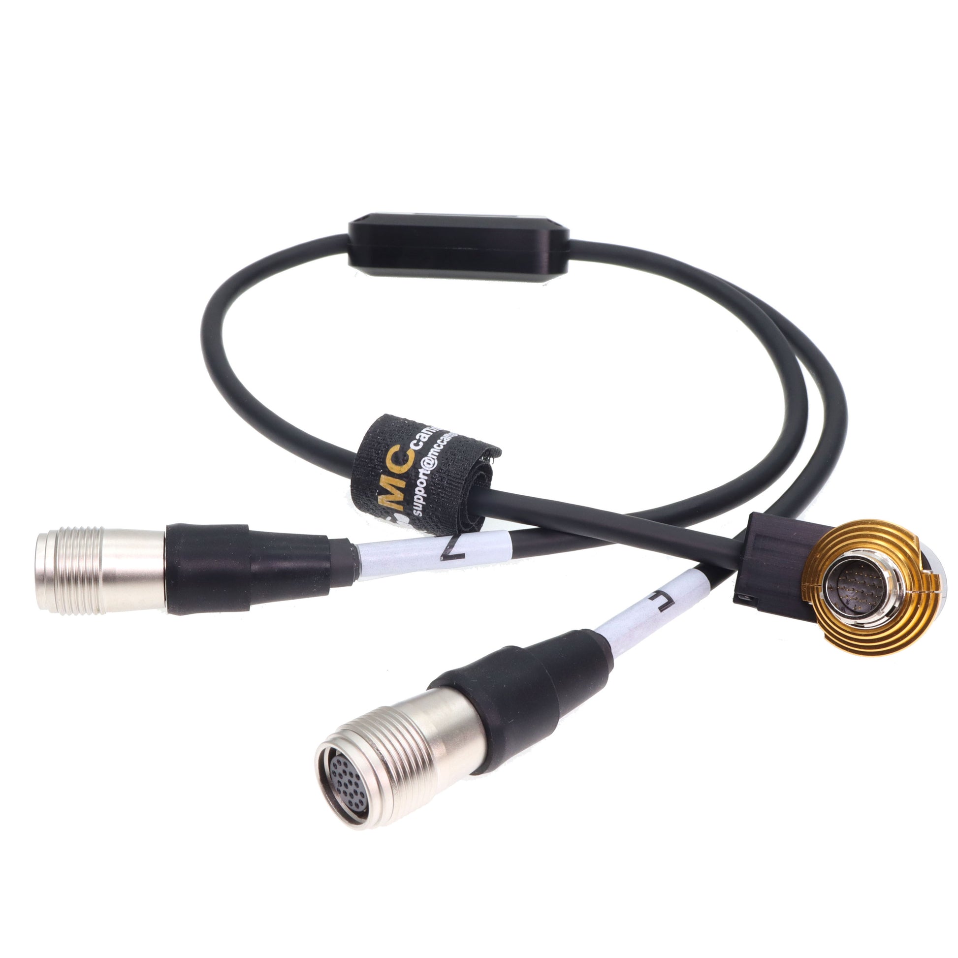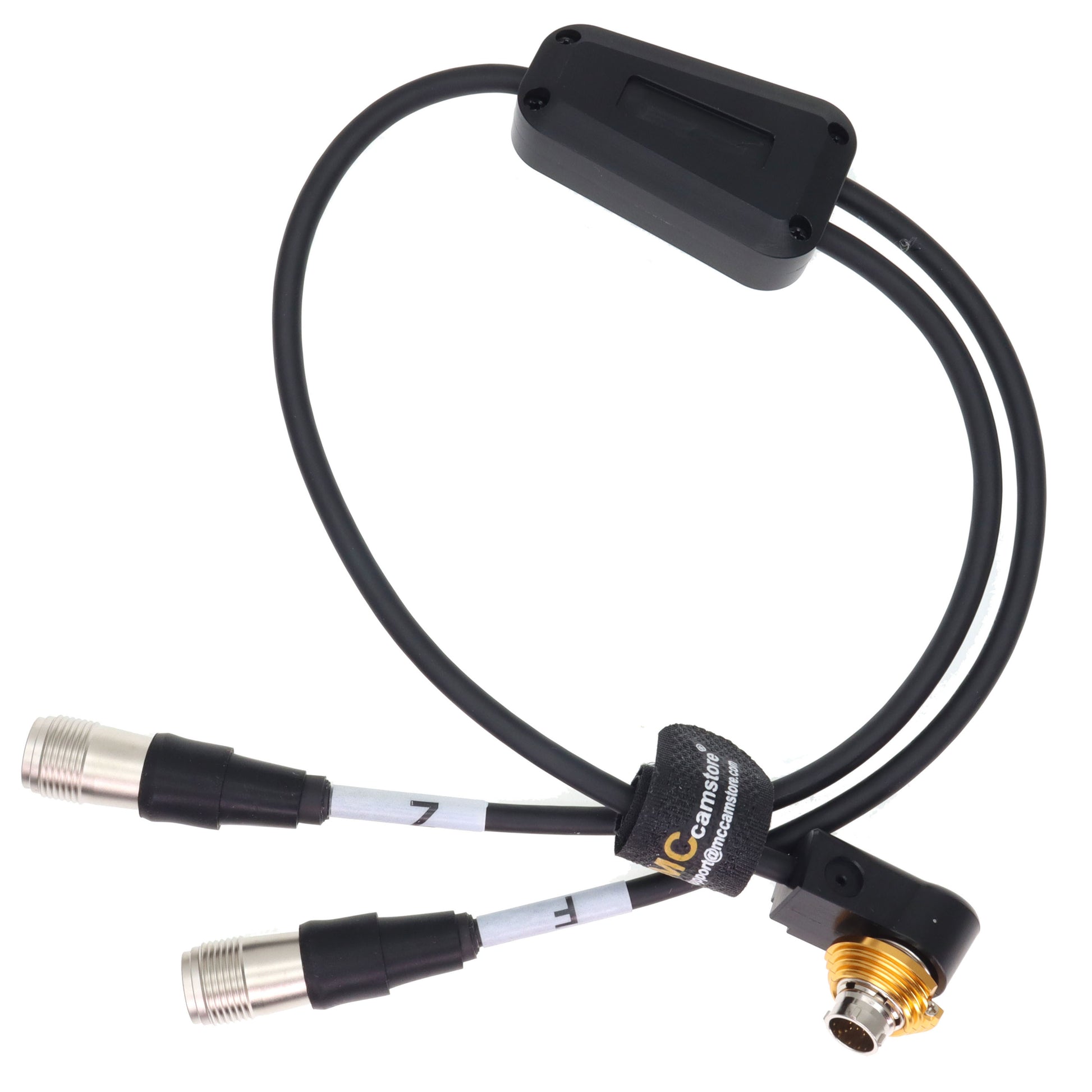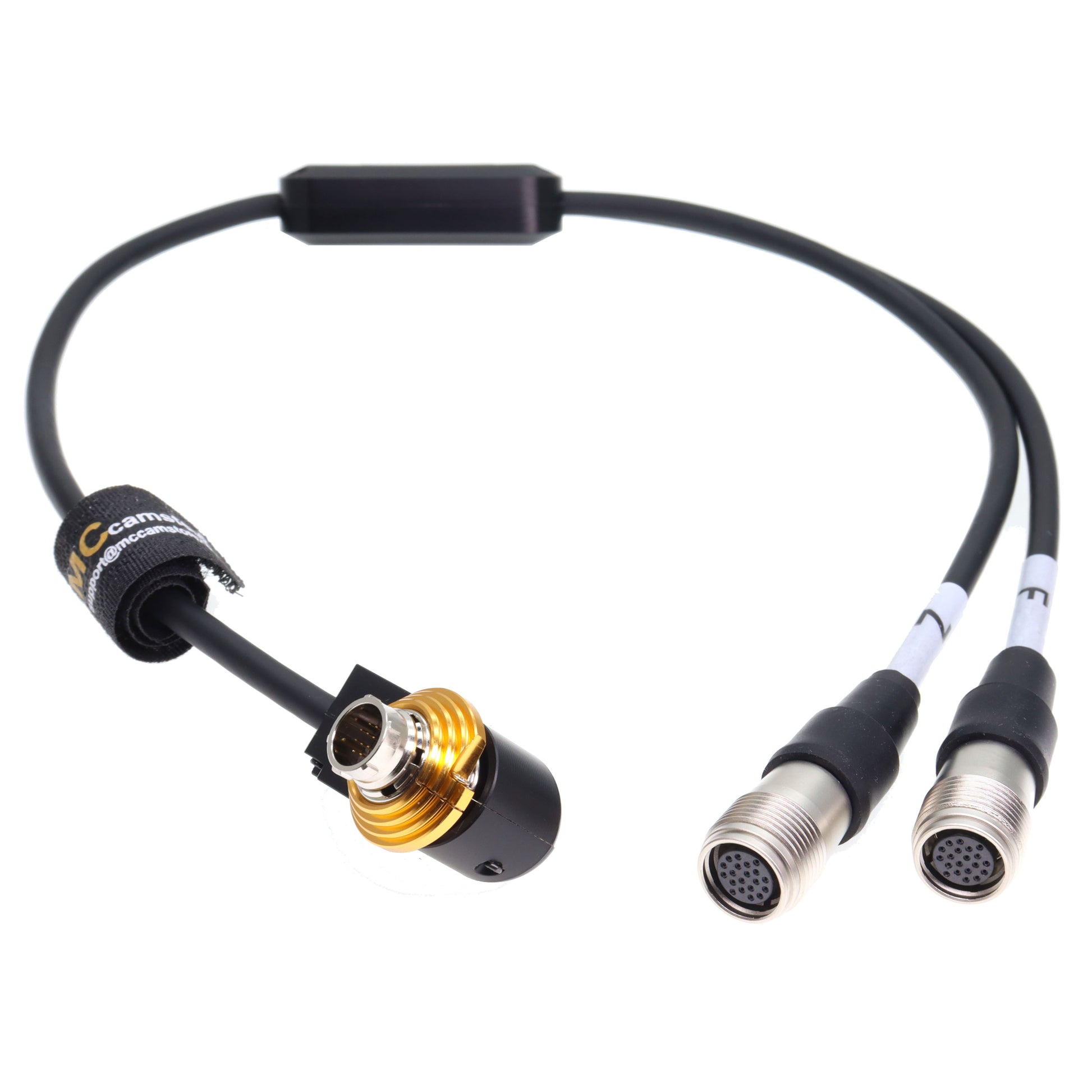 - The Y-cable features two female controller 20-pin connectors on one end and a single, right-angle male lens servo 20-pin connector on the other end. Legnth 25cm / 50cm available. other length can not be customized.