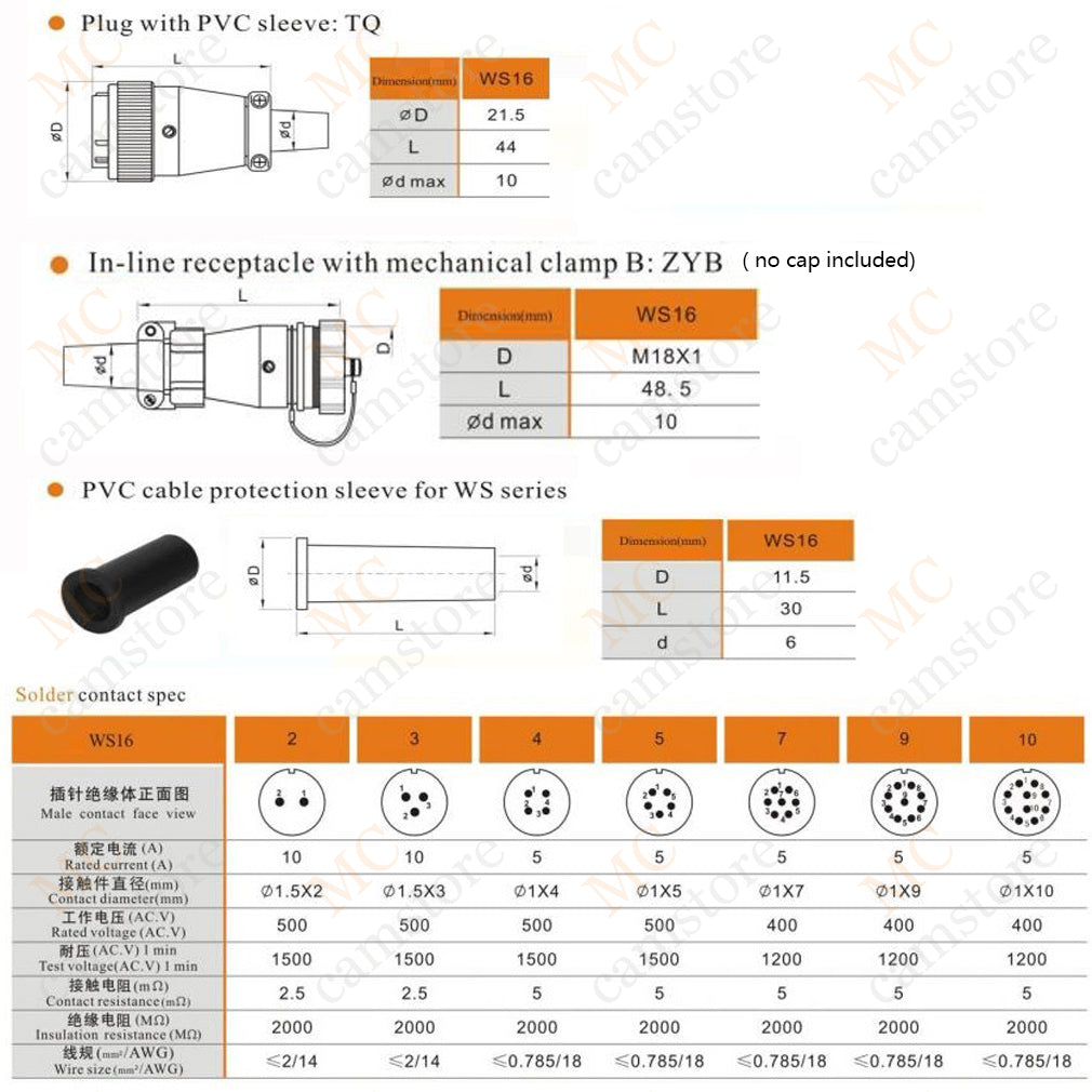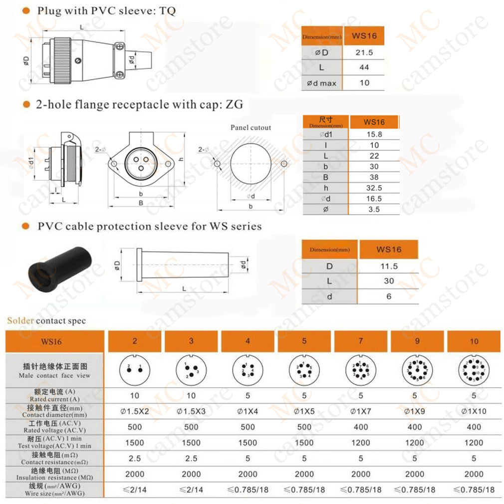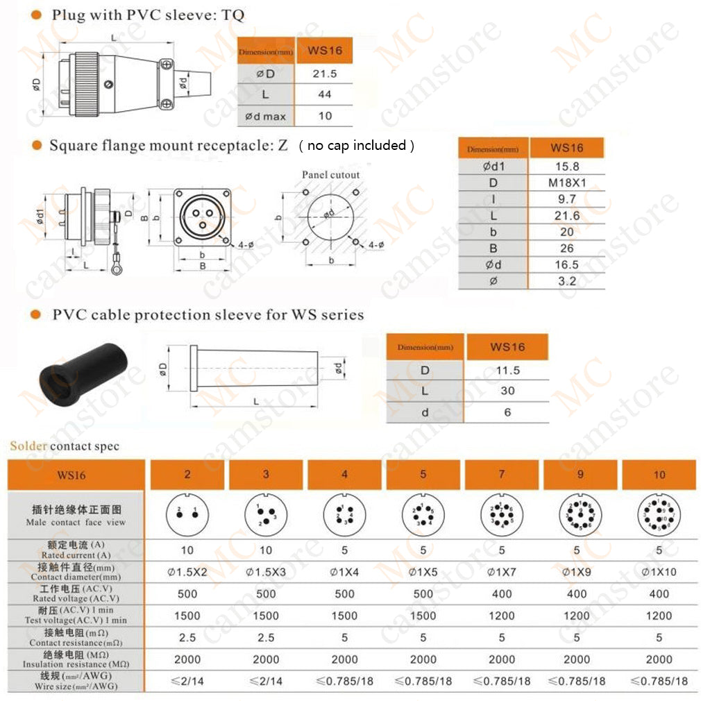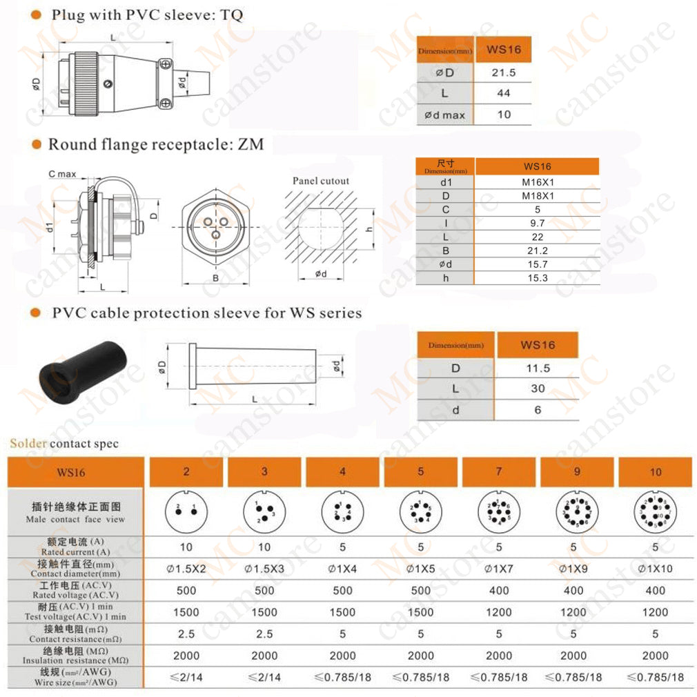 WEIPU WS16 2 3 4 5 7 9 10 pin aviation connector, panel mount / inline docking connector