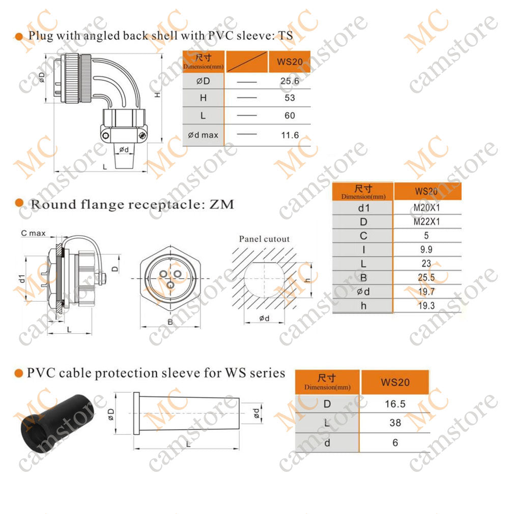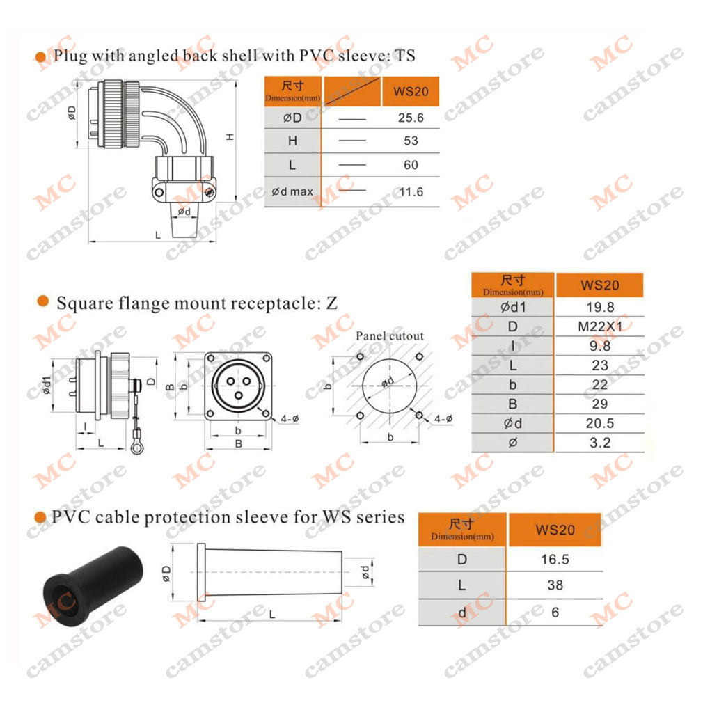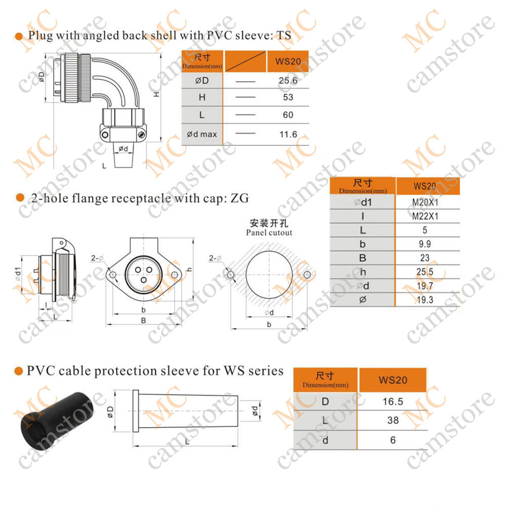 Weipu WS20 series 2 3 4 5 6 7 9 12 15 pin Circular Connector, High Voltage Power Cord Aviation Plug Socket